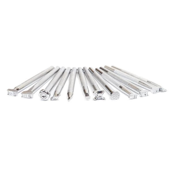 Stamping tool set! Great variety in this stamp set for a bargain of a price! Many tools can be used for borders and backgrounds- while a few others are better suited for details like flower centers and barbed wire. You will receive the 12 tools listed.