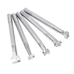 This 5 piece stamping tool set comes with four basketweave stamping tools and one camouflage tool for making awesome patterns. A must have for your stamping tool collection!