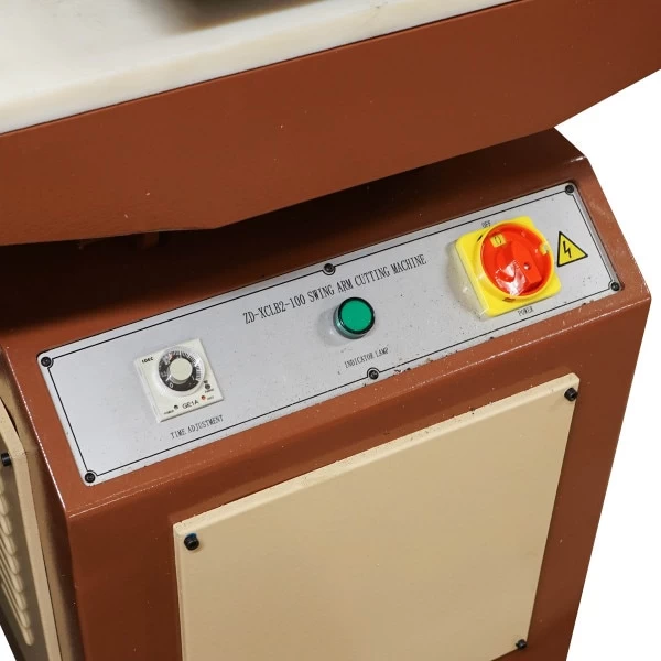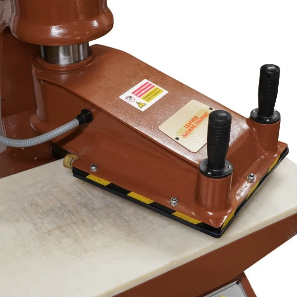 Hydraulic 10 Ton Clicker with 220V Single Phase, 2 hp. (1.5 KW) motor, and electronic control system. Equipped with a rotating head with a 3/4″-3″ (5-75 mm.) stroke range, a 29.5″ x 15.75″ cutting space, and a 3/4″ nylon cutting board. Also features a two-handed Dead Man Switch safety system.