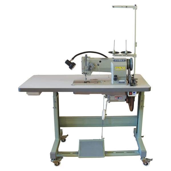 Leather Machine Company is the premier sewing machine company for leather crafters! The Cobra Class 17 sewing machine features a digital servo motor, heavy duty speed reducer and walking foot mechanism. It is able to sew some materials up to 1/4” (6.35 mm.), and uses thread sizes 69 – 138 with its big, M style bobbin. The machine rests upon a stand with locking casters and includes an LED light, thread stand, bobbin winder and automatic lubrication. This Cobra Class 17 also includes 10 needles, four bobbins, a magnetic guide, thread-oil-tool package, and comprehensive manual.