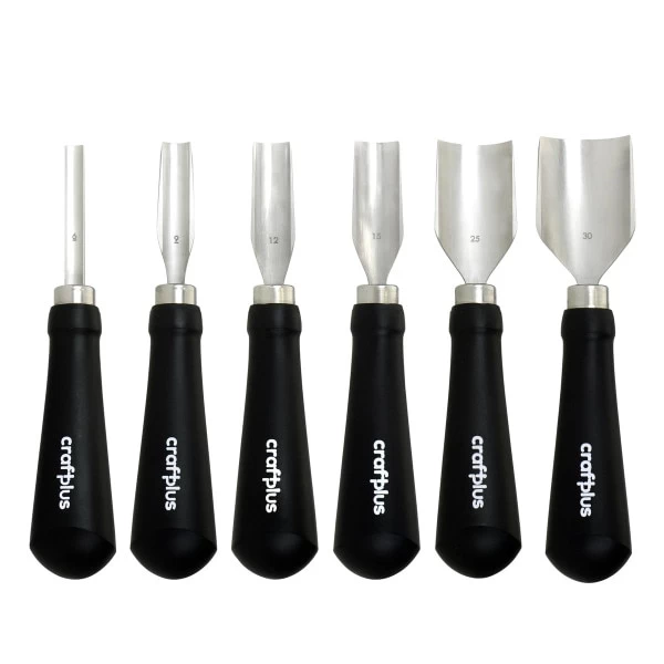 Looking for an easy and fast way to cut perfectly rounded corners? We’ve got the right tool for you. Try our Craftplus® Corner Knives to achieve consistent and professional corner results. These knives are made from DC53 steel and designed to cut through leather with a simple push of the handle, eliminating the need for a hammer or mallet. Each corner knife features Craftplus®’s signature ergonomic handle, providing you with a comfortable grip during use. Available in 6 sizes. For best results and to extend the life of your tools, we suggest using these knives with one of our poly cutting boards.