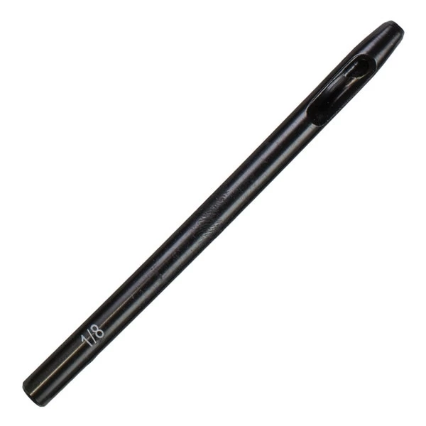 These have a slick Black finish. Best drive punch on the block…at least on our block! These solid one-piece tools, are drop-forged from tool steel, and the sweet thing about them, is that they automatically clean your punched leather out the side of the barrel so there’s never any clogging…I mean who needs a clogged barrel anyway? Round Drive Punch 1/8″ Item #330-1212