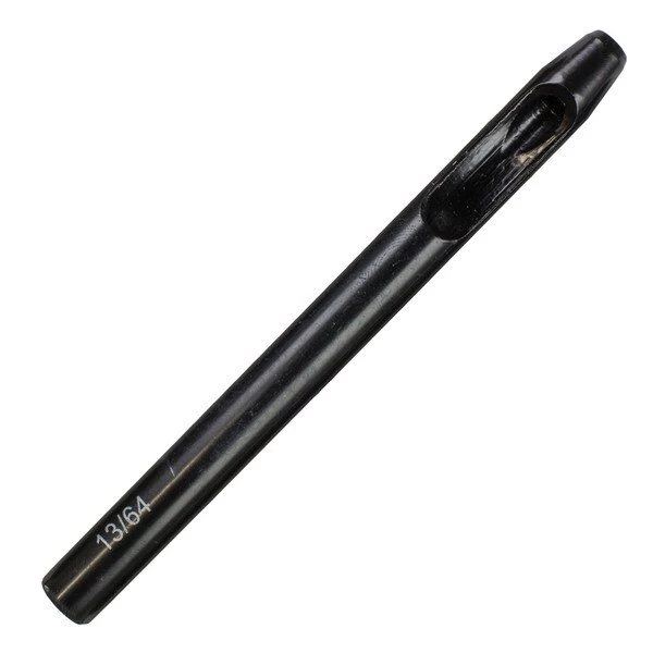 These have a slick Black finish. Best drive punch on the block…at least on our block! These solid one-piece tools, are drop-forged from tool steel, and the sweet thing about them, is that they automatically clean your punched leather out the side of the barrel so there’s never any clogging…I mean who needs a clogged barrel anyway? Round Drive Punch 13/64″ Item #330-1215