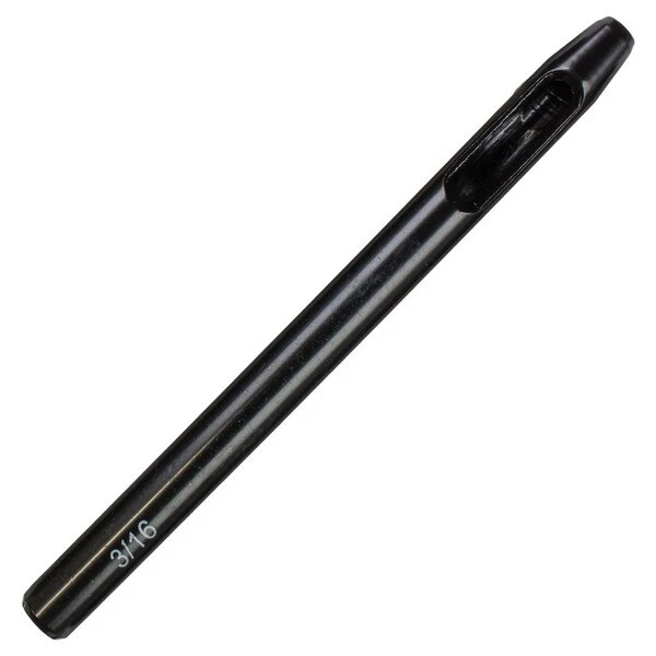 These have a slick Black finish. Best drive punch on the block…at least on our block! These solid one-piece tools, are drop-forged from tool steel, and the sweet thing about them, is that they automatically clean your punched leather out the side of the barrel so there’s never any clogging…I mean who needs a clogged barrel anyway? Round Drive Punch 3/16″ Item #330-1214