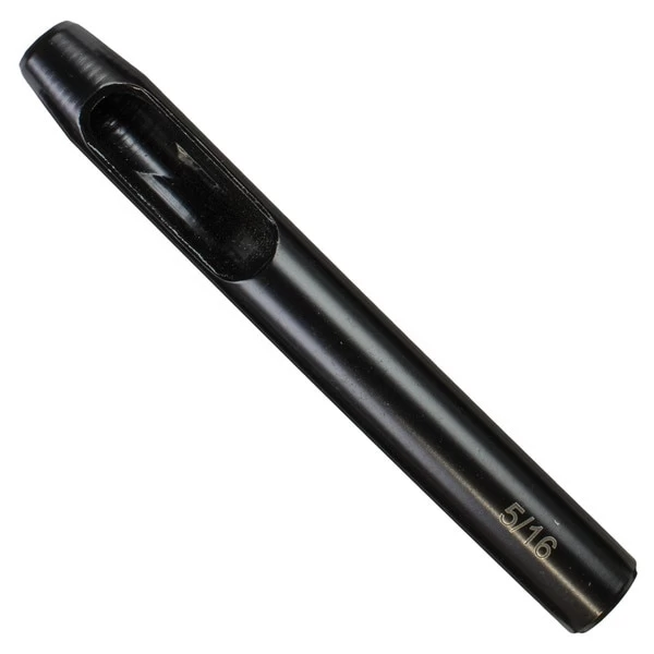 These have a slick Black finish. Best drive punch on the block…at least on our block! These solid one-piece tools, are drop-forged from tool steel, and the sweet thing about them, is that they automatically clean your punched leather out the side of the barrel so there’s never any clogging…I mean who needs a clogged barrel anyway? Round Drive Punch 5/16″ Item #330-1217